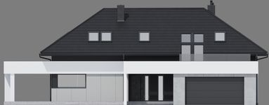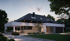 Graficzne opracowanie rzutów poglądowych widocznych na karcie projektu zostało wykonane przez Extradom.pl. Prezentowane przez Extradom.pl wizualizacje wykonane zostały przez autora projektu i należy poczytywać je jedynie za przykład i propozycję wykończenia, wizję architektoniczną autora projektu. Ostateczne wykończenie budynku może nastąpić na wiele sposobów. Szczegółowe rozwiązania zastosowane w oferowanej dokumentacji - w tym również ilość, lokalizacje i wygląd okien, drzwi, kominów - mogą w niewielkim stopniu różnić się od prezentowanej wizualizacji budynku.