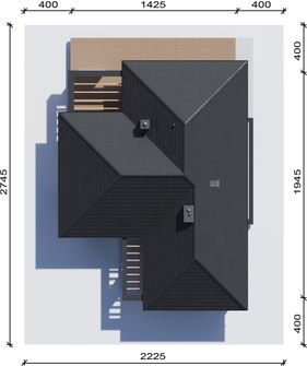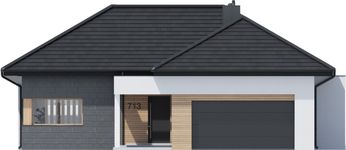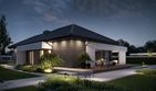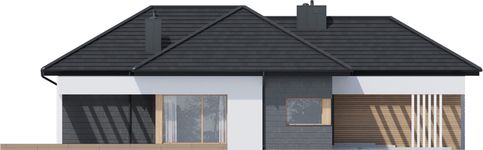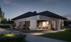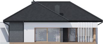 Graficzne opracowanie rzutów poglądowych widocznych na karcie projektu zostało wykonane przez Extradom.pl. Prezentowane przez Extradom.pl wizualizacje wykonane zostały przez autora projektu i należy poczytywać je jedynie za przykład i propozycję wykończenia, wizję architektoniczną autora projektu. Ostateczne wykończenie budynku może nastąpić na wiele sposobów. Szczegółowe rozwiązania zastosowane w oferowanej dokumentacji - w tym również ilość, lokalizacje i wygląd okien, drzwi, kominów - mogą w niewielkim stopniu różnić się od prezentowanej wizualizacji budynku.