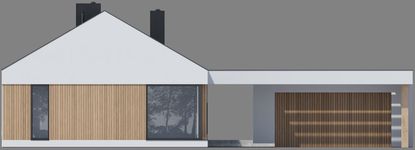 Graficzne opracowanie rzutów poglądowych widocznych na karcie projektu zostało wykonane przez Extradom.pl. Prezentowane przez Extradom.pl wizualizacje wykonane zostały przez autora projektu i należy poczytywać je jedynie za przykład i propozycję wykończenia, wizję architektoniczną autora projektu. Ostateczne wykończenie budynku może nastąpić na wiele sposobów. Szczegółowe rozwiązania zastosowane w oferowanej dokumentacji - w tym również ilość, lokalizacje i wygląd okien, drzwi, kominów - mogą w niewielkim stopniu różnić się od prezentowanej wizualizacji budynku.