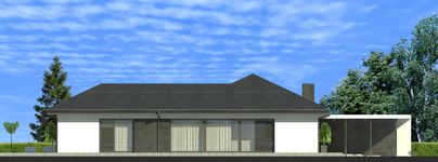 Graficzne opracowanie rzutów poglądowych widocznych na karcie projektu zostało wykonane przez Extradom.pl. Prezentowane przez Extradom.pl wizualizacje wykonane zostały przez autora projektu i należy poczytywać je jedynie za przykład i propozycję wykończenia, wizję architektoniczną autora projektu. Ostateczne wykończenie budynku może nastąpić na wiele sposobów. Szczegółowe rozwiązania zastosowane w oferowanej dokumentacji - w tym również ilość, lokalizacje i wygląd okien, drzwi, kominów - mogą w niewielkim stopniu różnić się od prezentowanej wizualizacji budynku.