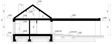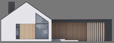 Graficzne opracowanie rzutów poglądowych widocznych na karcie projektu zostało wykonane przez Extradom.pl. Prezentowane przez Extradom.pl wizualizacje wykonane zostały przez autora projektu i należy poczytywać je jedynie za przykład i propozycję wykończenia, wizję architektoniczną autora projektu. Ostateczne wykończenie budynku może nastąpić na wiele sposobów. Szczegółowe rozwiązania zastosowane w oferowanej dokumentacji - w tym również ilość, lokalizacje i wygląd okien, drzwi, kominów - mogą w niewielkim stopniu różnić się od prezentowanej wizualizacji budynku.