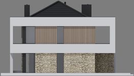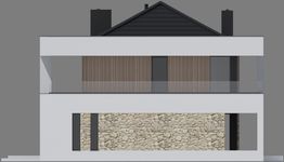 Graficzne opracowanie rzutów poglądowych widocznych na karcie projektu zostało wykonane przez Extradom.pl. Prezentowane przez Extradom.pl wizualizacje wykonane zostały przez autora projektu i należy poczytywać je jedynie za przykład i propozycję wykończenia, wizję architektoniczną autora projektu. Ostateczne wykończenie budynku może nastąpić na wiele sposobów. Szczegółowe rozwiązania zastosowane w oferowanej dokumentacji - w tym również ilość, lokalizacje i wygląd okien, drzwi, kominów - mogą w niewielkim stopniu różnić się od prezentowanej wizualizacji budynku.