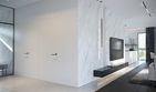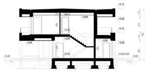 Fundamenty: tradycyjne - na ławach fundamentowych. Ściany: dwuwarstwowe pustak ceramiczny 25 cm + styropian Termo Organika 20 cm / wełna mineralna 18 cm. Strop: żelbetowy wylewany. Dach: stropodach pełny kryty membraną EPDM. Elewacja: tynk silikonowy o strukturze betonu w kolorze białym i grafitowym połączony z drewnem elewacyjnym. Ogrzewanie: gazowe - piec kondensacyjny oraz ogrzewanie podłogowe w salonie, kuchni, jadalni, łazienkach, pralni, wiatrołapie, garderobach i w części komunikacyjnej, w pozostałych pomieszczeniach tradycyjne grzejniki i grzejniki kanałowe przy dużych przeszkleniach. Wentylacja: mechaniczna z rekuperacją.