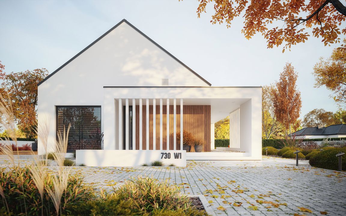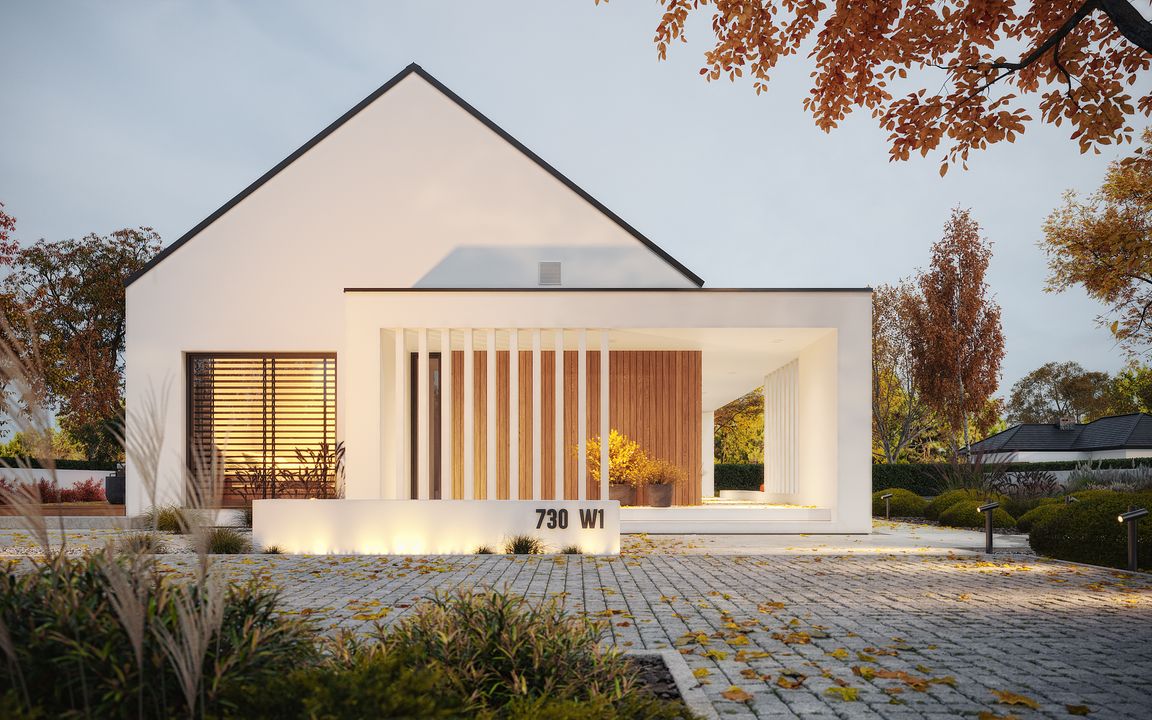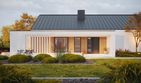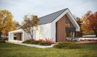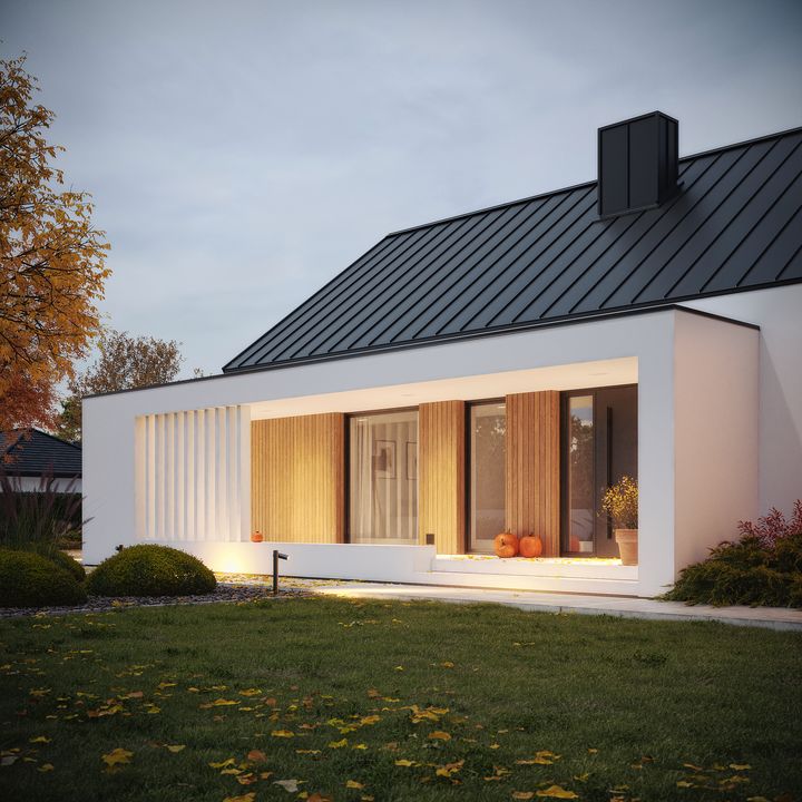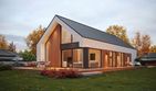 Graficzne opracowanie rzutów poglądowych widocznych na karcie projektu zostało wykonane przez Extradom.pl. Prezentowane przez Extradom.pl wizualizacje wykonane zostały przez autora projektu i należy poczytywać je jedynie za przykład i propozycję wykończenia, wizję architektoniczną autora projektu. Ostateczne wykończenie budynku może nastąpić na wiele sposobów. Szczegółowe rozwiązania zastosowane w oferowanej dokumentacji - w tym również ilość, lokalizacje i wygląd okien, drzwi, kominów - mogą w niewielkim stopniu różnić się od prezentowanej wizualizacji budynku.