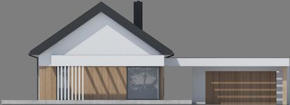 Graficzne opracowanie rzutów poglądowych widocznych na karcie projektu zostało wykonane przez Extradom.pl. Prezentowane przez Extradom.pl wizualizacje wykonane zostały przez autora projektu i należy poczytywać je jedynie za przykład i propozycję wykończenia, wizję architektoniczną autora projektu. Ostateczne wykończenie budynku może nastąpić na wiele sposobów. Szczegółowe rozwiązania zastosowane w oferowanej dokumentacji - w tym również ilość, lokalizacje i wygląd okien, drzwi, kominów - mogą w niewielkim stopniu różnić się od prezentowanej wizualizacji budynku.