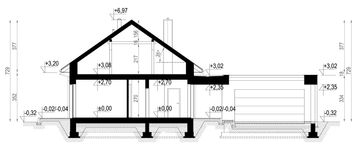Fundamenty: tradycyjne, na ławach fundamentowych. Ściany: dwuwarstwowe: pustak ceramiczny 25 cm + styropian 20 cm / wełna mineralna 16 cm, GARAŻ styropian 15 cm / wełna mineralna 10 cm. Strop: żelbetowy, wylewany. Dach: dwuspadowy, kryty blachą na rąbek stojący. Elewacja: tynk silikonowy w kolorze białym, drewno elewacyjne. Ogrzewanie: Gazowe - piec kondensacyjny. Ogrzewanie podłogowe w całym domu. Wentylacja: Mechaniczna z rekuperacją.