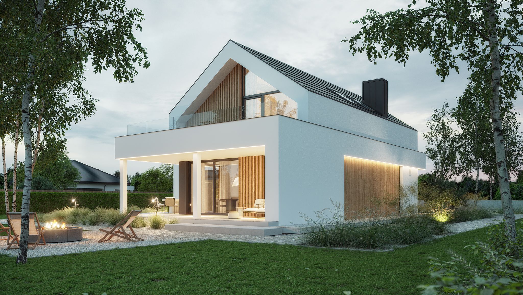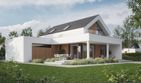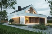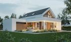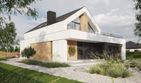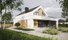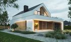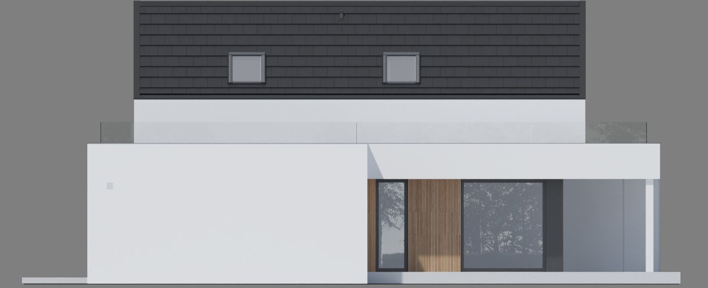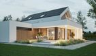 Graficzne opracowanie rzutów poglądowych widocznych na karcie projektu zostało wykonane przez Extradom.pl. Prezentowane przez Extradom.pl wizualizacje wykonane zostały przez autora projektu i należy poczytywać je jedynie za przykład i propozycję wykończenia, wizję architektoniczną autora projektu. Ostateczne wykończenie budynku może nastąpić na wiele sposobów. Szczegółowe rozwiązania zastosowane w oferowanej dokumentacji - w tym również ilość, lokalizacje i wygląd okien, drzwi, kominów - mogą w niewielkim stopniu różnić się od prezentowanej wizualizacji budynku.