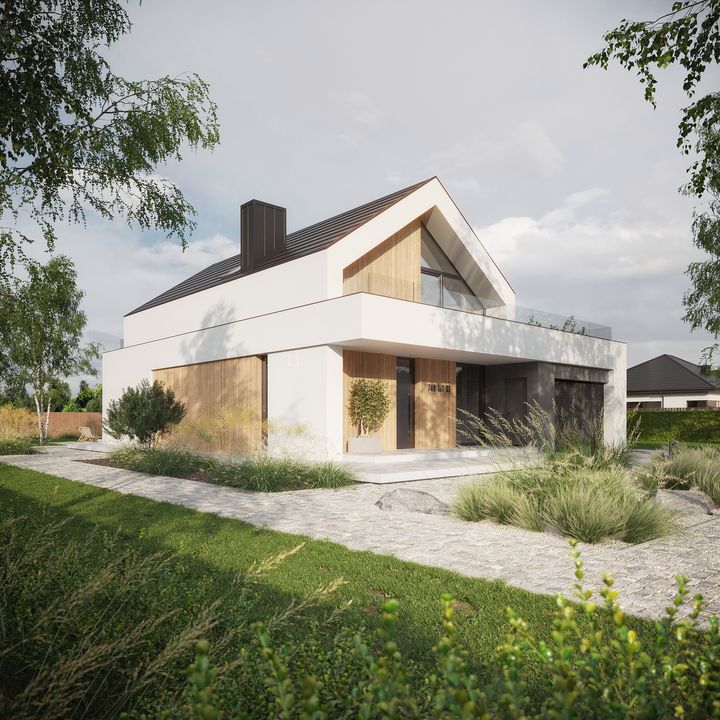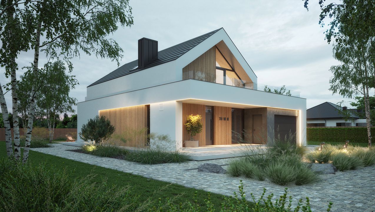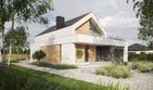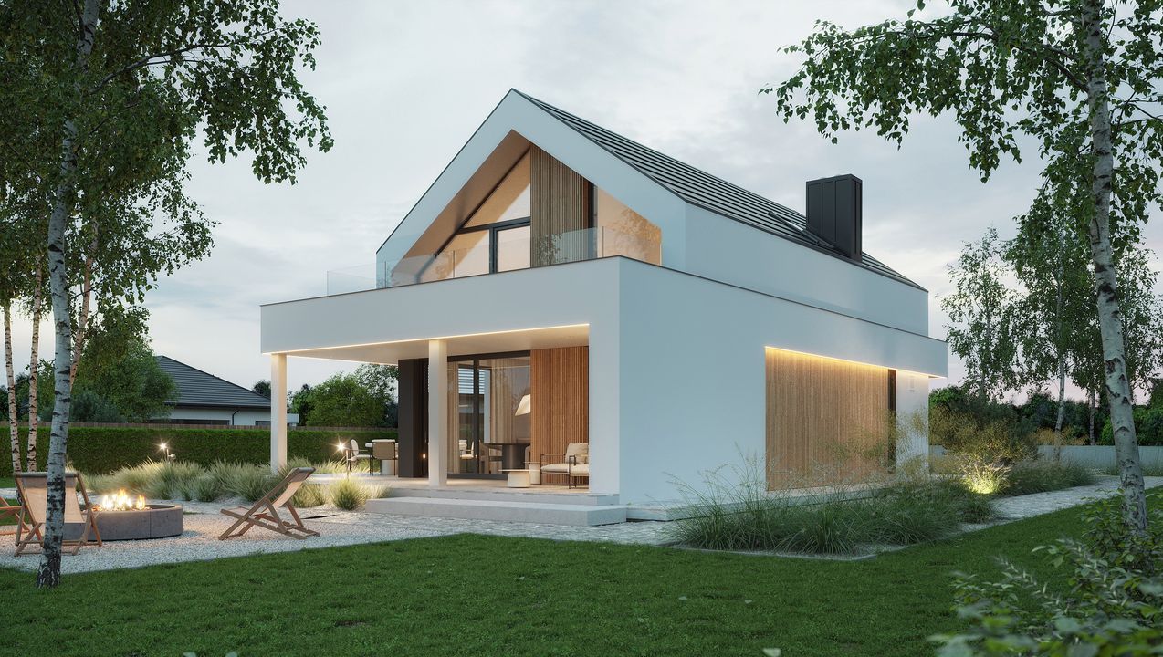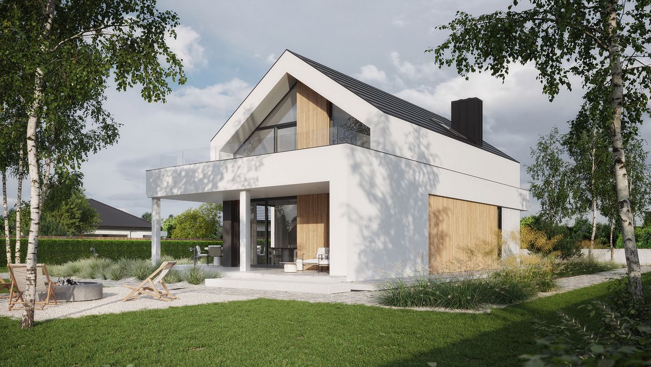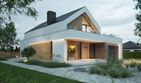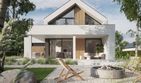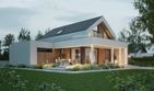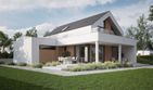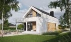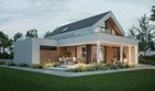 Graficzne opracowanie rzutów poglądowych widocznych na karcie projektu zostało wykonane przez Extradom.pl. Prezentowane przez Extradom.pl wizualizacje wykonane zostały przez autora projektu i należy poczytywać je jedynie za przykład i propozycję wykończenia, wizję architektoniczną autora projektu. Ostateczne wykończenie budynku może nastąpić na wiele sposobów. Szczegółowe rozwiązania zastosowane w oferowanej dokumentacji - w tym również ilość, lokalizacje i wygląd okien, drzwi, kominów - mogą w niewielkim stopniu różnić się od prezentowanej wizualizacji budynku.