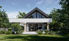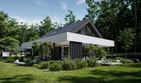 Graficzne opracowanie rzutów poglądowych widocznych na karcie projektu zostało wykonane przez Extradom.pl. Prezentowane przez Extradom.pl wizualizacje wykonane zostały przez autora projektu i należy poczytywać je jedynie za przykład i propozycję wykończenia, wizję architektoniczną autora projektu. Ostateczne wykończenie budynku może nastąpić na wiele sposobów. Szczegółowe rozwiązania zastosowane w oferowanej dokumentacji - w tym również ilość, lokalizacje i wygląd okien, drzwi, kominów - mogą w niewielkim stopniu różnić się od prezentowanej wizualizacji budynku.