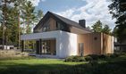 Graficzne opracowanie rzutów poglądowych widocznych na karcie projektu zostało wykonane przez Extradom.pl. Prezentowane przez Extradom.pl wizualizacje wykonane zostały przez autora projektu i należy poczytywać je jedynie za przykład i propozycję wykończenia, wizję architektoniczną autora projektu. Ostateczne wykończenie budynku może nastąpić na wiele sposobów. Szczegółowe rozwiązania zastosowane w oferowanej dokumentacji - w tym również ilość, lokalizacje i wygląd okien, drzwi, kominów - mogą w niewielkim stopniu różnić się od prezentowanej wizualizacji budynku.