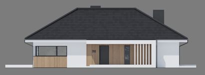 Graficzne opracowanie rzutów poglądowych widocznych na karcie projektu zostało wykonane przez Extradom.pl. Prezentowane przez Extradom.pl wizualizacje wykonane zostały przez autora projektu i należy poczytywać je jedynie za przykład i propozycję wykończenia, wizję architektoniczną autora projektu. Ostateczne wykończenie budynku może nastąpić na wiele sposobów. Szczegółowe rozwiązania zastosowane w oferowanej dokumentacji - w tym również ilość, lokalizacje i wygląd okien, drzwi, kominów - mogą w niewielkim stopniu różnić się od prezentowanej wizualizacji budynku.
