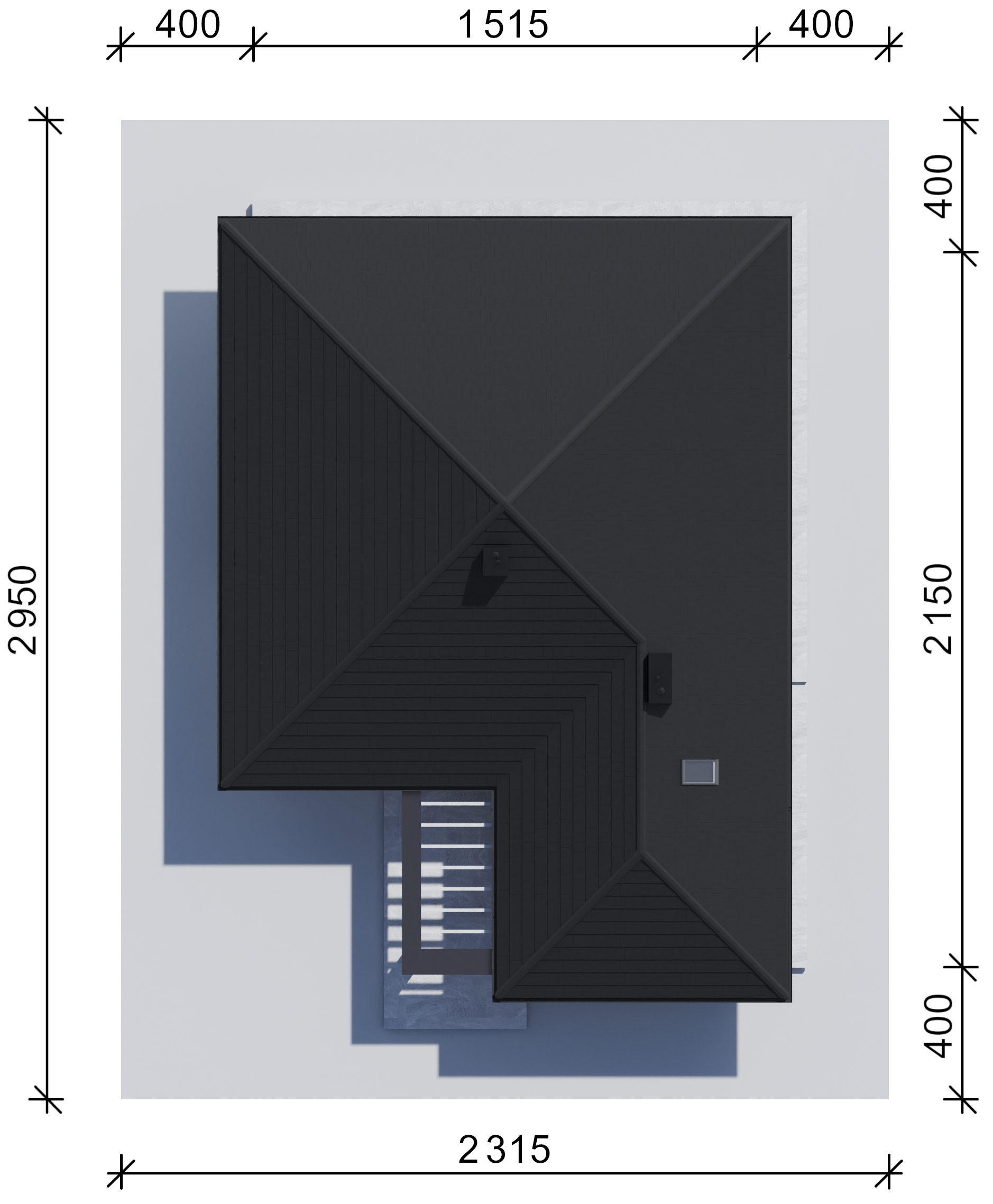 Graficzne opracowanie rzutów poglądowych widocznych na karcie projektu zostało wykonane przez Extradom.pl. Prezentowane przez Extradom.pl wizualizacje wykonane zostały przez autora projektu i należy poczytywać je jedynie za przykład i propozycję wykończenia, wizję architektoniczną autora projektu. Ostateczne wykończenie budynku może nastąpić na wiele sposobów. Szczegółowe rozwiązania zastosowane w oferowanej dokumentacji - w tym również ilość, lokalizacje i wygląd okien, drzwi, kominów - mogą w niewielkim stopniu różnić się od prezentowanej wizualizacji budynku.