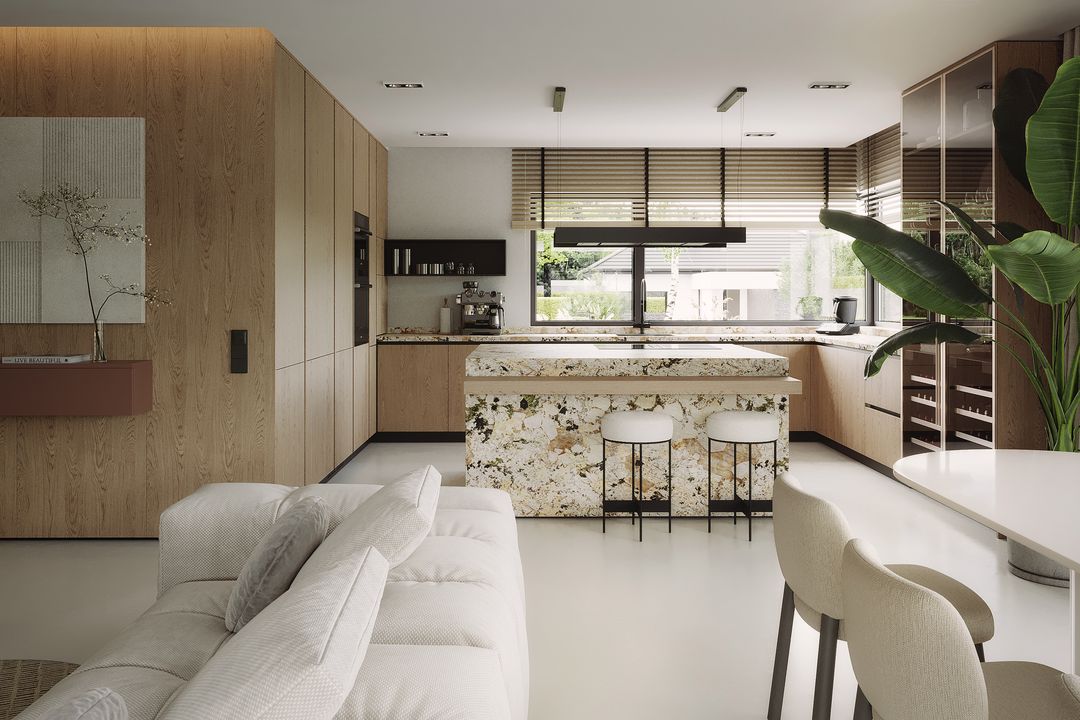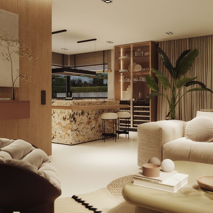 Fundamenty: Tradycyjnie - na ławach fundamentowych. Ściany: Dwuwarstwowe pustak ceramiczny 25 cm + styropian 20 cm / wełna mineralna 16 cm. Strop: Żelbetowy wylewany. Dach: Wielospadowy kryty dachówką ceramiczną. Elewacja: Tynk silikonowy połączony z drewnem elewacyjnym lub lamelami elewacyjnymi Super Premium Qulanti. Ogrzewanie: Gazowe- piec kondensacyjny. Ogrzewanie podłogowe w całym domu. Wentylacja: Mechaniczna z rekuperacją.