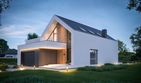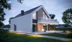 Graficzne opracowanie rzutów poglądowych widocznych na karcie projektu zostało wykonane przez Extradom.pl. Prezentowane przez Extradom.pl wizualizacje wykonane zostały przez autora projektu i należy poczytywać je jedynie za przykład i propozycję wykończenia, wizję architektoniczną autora projektu. Ostateczne wykończenie budynku może nastąpić na wiele sposobów. Szczegółowe rozwiązania zastosowane w oferowanej dokumentacji - w tym również ilość, lokalizacje i wygląd okien, drzwi, kominów - mogą w niewielkim stopniu różnić się od prezentowanej wizualizacji budynku.