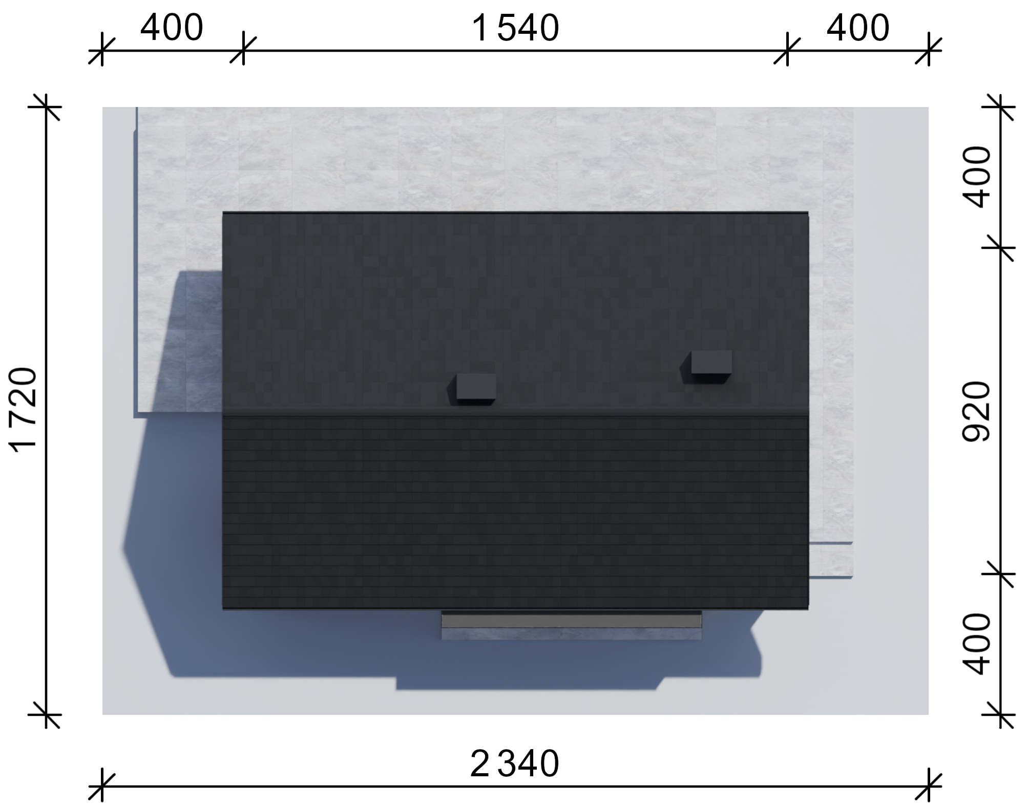Graficzne opracowanie rzutów poglądowych widocznych na karcie projektu zostało wykonane przez Extradom.pl. Prezentowane przez Extradom.pl wizualizacje wykonane zostały przez autora projektu i należy poczytywać je jedynie za przykład i propozycję wykończenia, wizję architektoniczną autora projektu. Ostateczne wykończenie budynku może nastąpić na wiele sposobów. Szczegółowe rozwiązania zastosowane w oferowanej dokumentacji - w tym również ilość, lokalizacje i wygląd okien, drzwi, kominów - mogą w niewielkim stopniu różnić się od prezentowanej wizualizacji budynku.