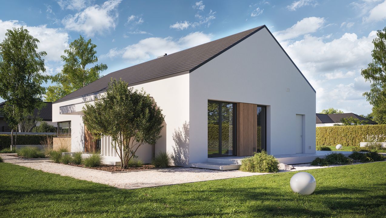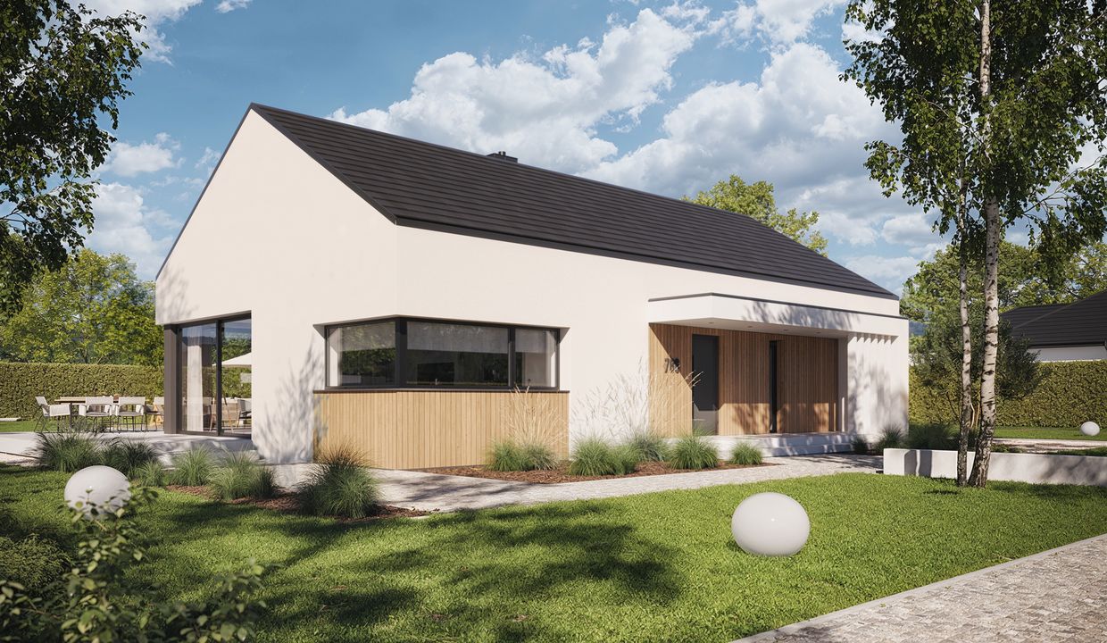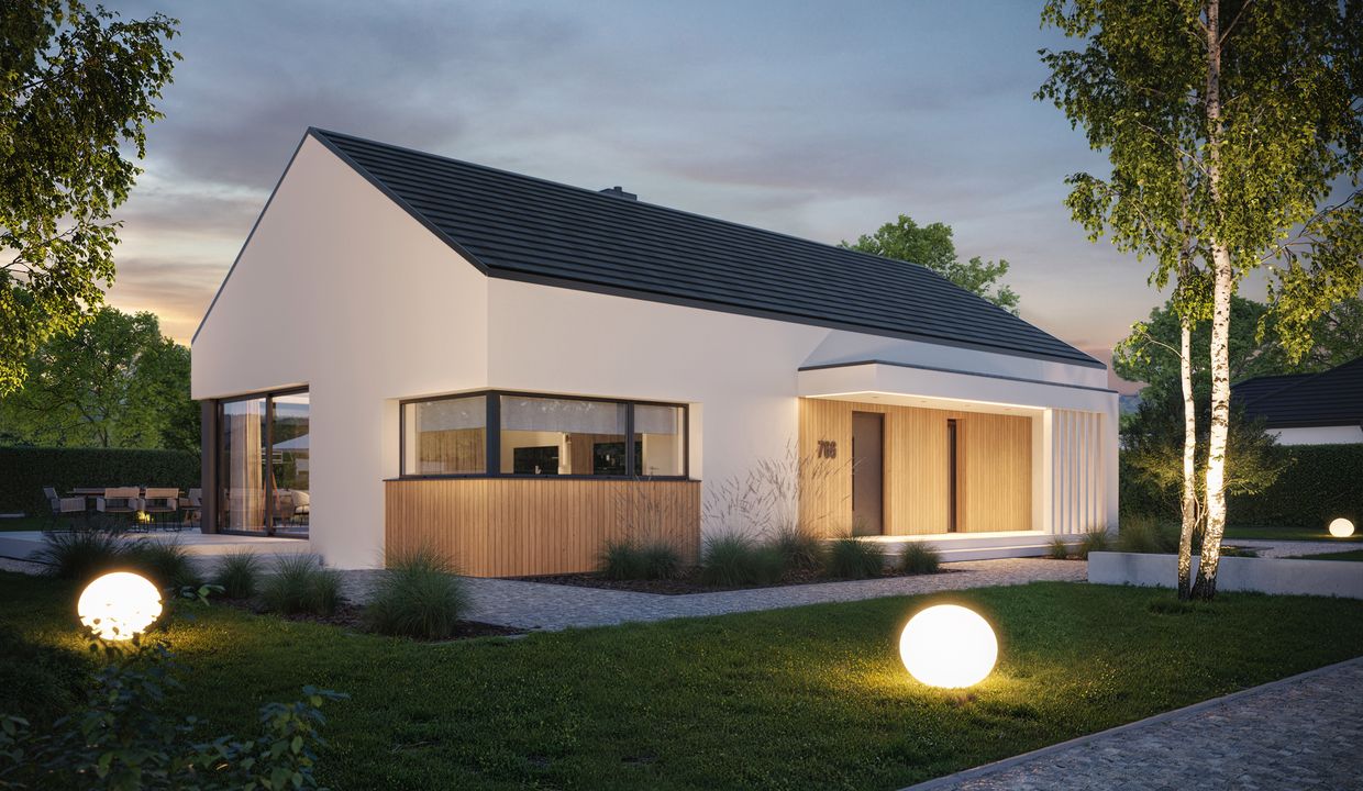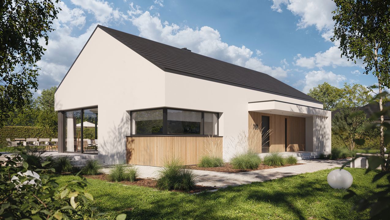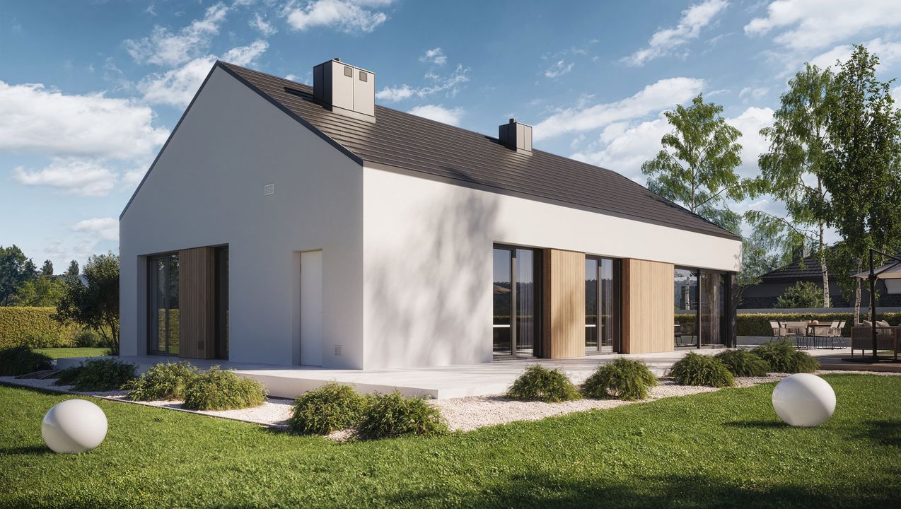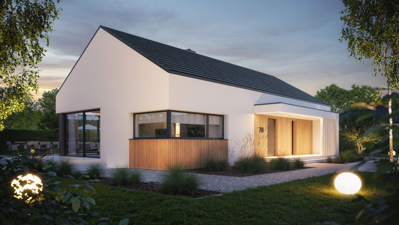 Fundamenty: Tradycyjne - na ławach fundamentowych; Ściany: Dwuwarstwowe pustak ceramiczny 25 cm + styropian 20 cm / wełna mineralna 16 cm; Strop: Żelbetowe wylewane; Dach: Dwuspadowy kryty dachówką ceramiczną; Elewacja: Tynk silikonowy połączony z drewnem elewacyjnym lub lamelami elewacyjnymi Super Premium Qulanti;