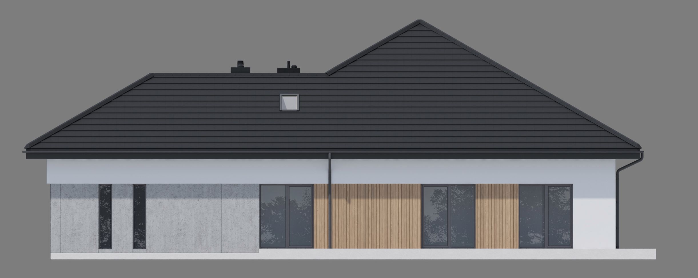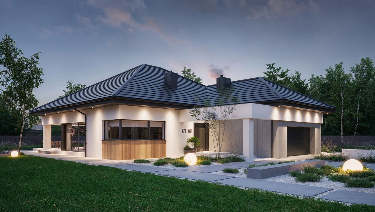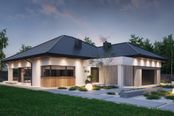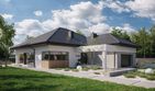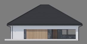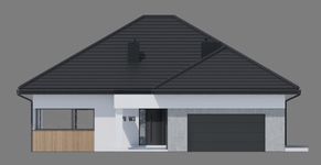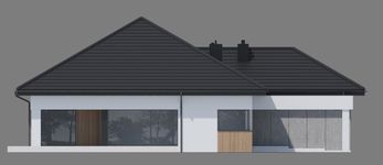 Graficzne opracowanie rzutów poglądowych widocznych na karcie projektu zostało wykonane przez Extradom.pl. Prezentowane przez Extradom.pl wizualizacje wykonane zostały przez autora projektu i należy poczytywać je jedynie za przykład i propozycję wykończenia, wizję architektoniczną autora projektu. Ostateczne wykończenie budynku może nastąpić na wiele sposobów. Szczegółowe rozwiązania zastosowane w oferowanej dokumentacji - w tym również ilość, lokalizacje i wygląd okien, drzwi, kominów - mogą w niewielkim stopniu różnić się od prezentowanej wizualizacji budynku.