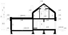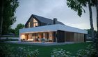 Graficzne opracowanie rzutów poglądowych widocznych na karcie projektu zostało wykonane przez Extradom.pl. Prezentowane przez Extradom.pl wizualizacje wykonane zostały przez autora projektu i należy poczytywać je jedynie za przykład i propozycję wykończenia, wizję architektoniczną autora projektu. Ostateczne wykończenie budynku może nastąpić na wiele sposobów. Szczegółowe rozwiązania zastosowane w oferowanej dokumentacji - w tym również ilość, lokalizacje i wygląd okien, drzwi, kominów - mogą w niewielkim stopniu różnić się od prezentowanej wizualizacji budynku.