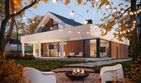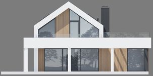 Graficzne opracowanie rzutów poglądowych widocznych na karcie projektu zostało wykonane przez Extradom.pl. Prezentowane przez Extradom.pl wizualizacje wykonane zostały przez autora projektu i należy poczytywać je jedynie za przykład i propozycję wykończenia, wizję architektoniczną autora projektu. Ostateczne wykończenie budynku może nastąpić na wiele sposobów. Szczegółowe rozwiązania zastosowane w oferowanej dokumentacji - w tym również ilość, lokalizacje i wygląd okien, drzwi, kominów - mogą w niewielkim stopniu różnić się od prezentowanej wizualizacji budynku.