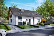 Graficzne opracowanie rzutów poglądowych widocznych na karcie projektu zostało wykonane przez Extradom.pl. Prezentowane przez Extradom.pl wizualizacje wykonane zostały przez autora projektu i należy poczytywać je jedynie za przykład i propozycję wykończenia, wizję architektoniczną autora projektu. Ostateczne wykończenie budynku może nastąpić na wiele sposobów. Szczegółowe rozwiązania zastosowane w oferowanej dokumentacji - w tym również ilość, lokalizacje i wygląd okien, drzwi, kominów - mogą w niewielkim stopniu różnić się od prezentowanej wizualizacji budynku.