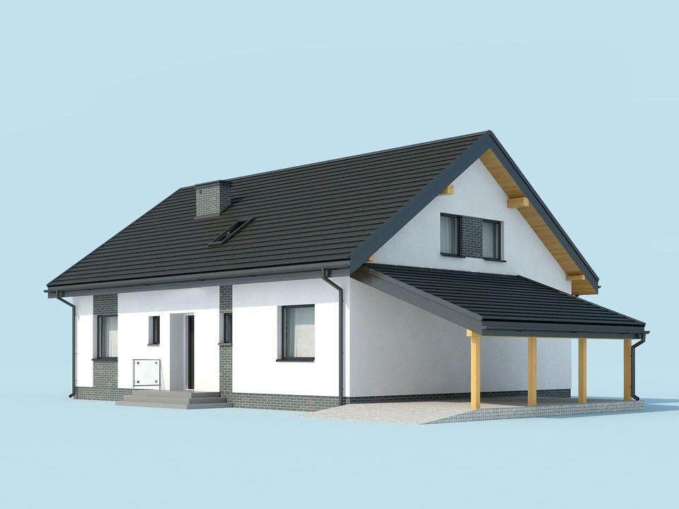Graficzne opracowanie rzutów poglądowych widocznych na karcie projektu zostało wykonane przez Extradom.pl. Prezentowane przez Extradom.pl wizualizacje wykonane zostały przez autora projektu i należy poczytywać je jedynie za przykład i propozycję wykończenia, wizję architektoniczną autora projektu. Ostateczne wykończenie budynku może nastąpić na wiele sposobów. Szczegółowe rozwiązania zastosowane w oferowanej dokumentacji - w tym również ilość, lokalizacje i wygląd okien, drzwi, kominów - mogą w niewielkim stopniu różnić się od prezentowanej wizualizacji budynku.
