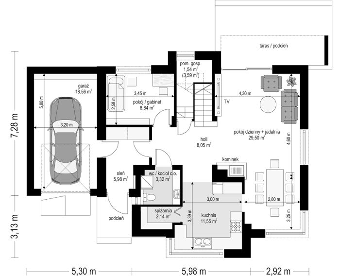 PROJEKT Z BUDOWĄ Istnieje możliwość zaadaptowania tego projektu do technologii prefabrykowanej/modułowej i budowy nawet w 6 miesięcy ze stałym kosztem budowy