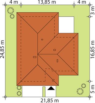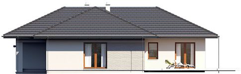 Graficzne opracowanie rzutów poglądowych widocznych na karcie projektu zostało wykonane przez Extradom.pl. Prezentowane przez Extradom.pl wizualizacje wykonane zostały przez autora projektu i należy poczytywać je jedynie za przykład i propozycję wykończenia, wizję architektoniczną autora projektu. Ostateczne wykończenie budynku może nastąpić na wiele sposobów. Szczegółowe rozwiązania zastosowane w oferowanej dokumentacji - w tym również ilość, lokalizacje i wygląd okien, drzwi, kominów - mogą w niewielkim stopniu różnić się od prezentowanej wizualizacji budynku.