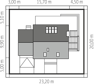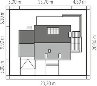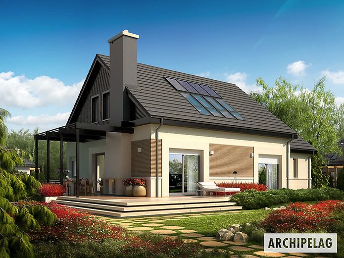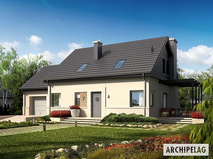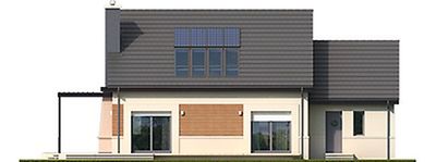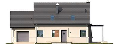 Graficzne opracowanie rzutów poglądowych widocznych na karcie projektu zostało wykonane przez Extradom.pl. Prezentowane przez Extradom.pl wizualizacje wykonane zostały przez autora projektu i należy poczytywać je jedynie za przykład i propozycję wykończenia, wizję architektoniczną autora projektu. Ostateczne wykończenie budynku może nastąpić na wiele sposobów. Szczegółowe rozwiązania zastosowane w oferowanej dokumentacji - w tym również ilość, lokalizacje i wygląd okien, drzwi, kominów - mogą w niewielkim stopniu różnić się od prezentowanej wizualizacji budynku.