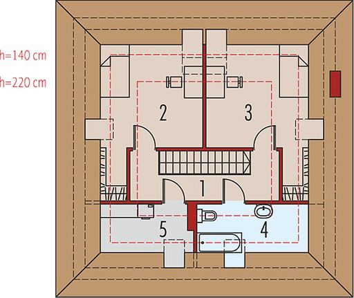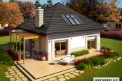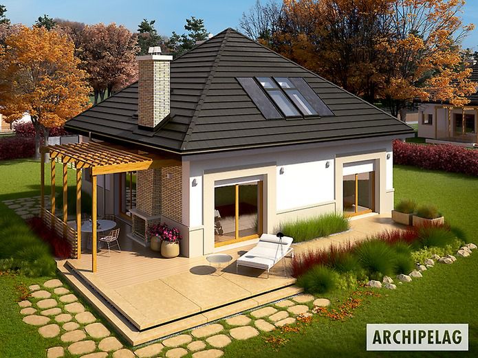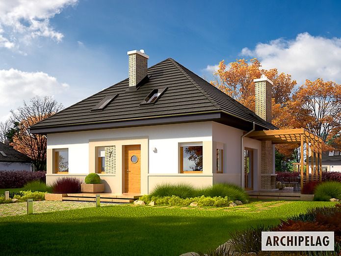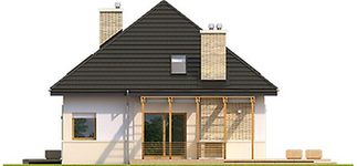Graficzne opracowanie rzutów poglądowych widocznych na karcie projektu zostało wykonane przez Extradom.pl. Prezentowane przez Extradom.pl wizualizacje wykonane zostały przez autora projektu i należy poczytywać je jedynie za przykład i propozycję wykończenia, wizję architektoniczną autora projektu. Ostateczne wykończenie budynku może nastąpić na wiele sposobów. Szczegółowe rozwiązania zastosowane w oferowanej dokumentacji - w tym również ilość, lokalizacje i wygląd okien, drzwi, kominów - mogą w niewielkim stopniu różnić się od prezentowanej wizualizacji budynku.