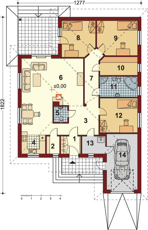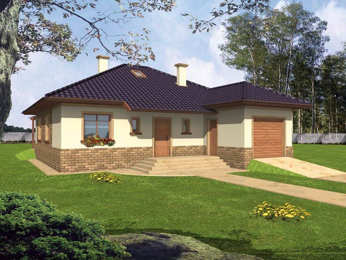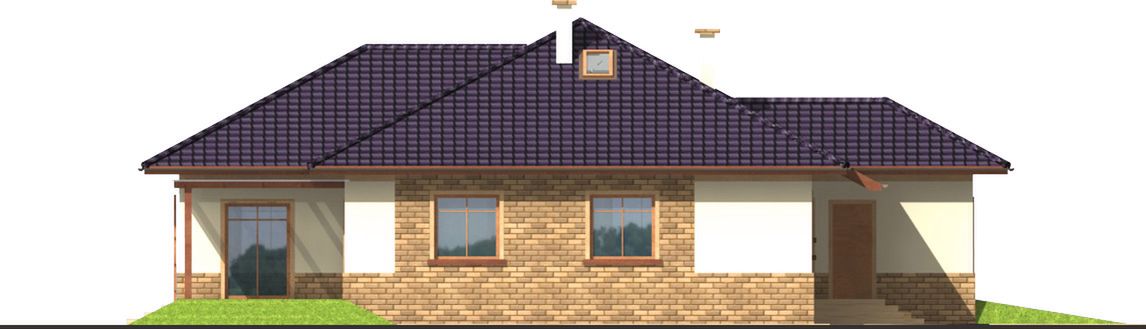 Graficzne opracowanie rzutów poglądowych widocznych na karcie projektu zostało wykonane przez Extradom.pl. Prezentowane przez Extradom.pl wizualizacje wykonane zostały przez autora projektu i należy poczytywać je jedynie za przykład i propozycję wykończenia, wizję architektoniczną autora projektu. Ostateczne wykończenie budynku może nastąpić na wiele sposobów. Szczegółowe rozwiązania zastosowane w oferowanej dokumentacji - w tym również ilość, lokalizacje i wygląd okien, drzwi, kominów - mogą w niewielkim stopniu różnić się od prezentowanej wizualizacji budynku.