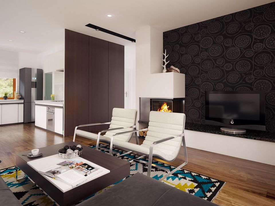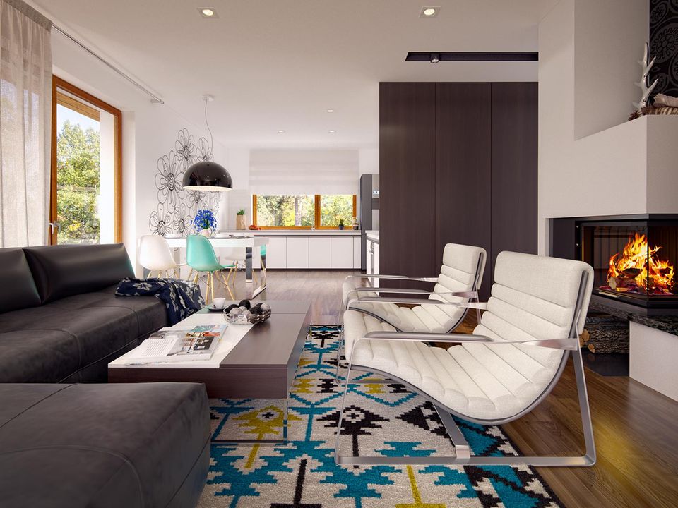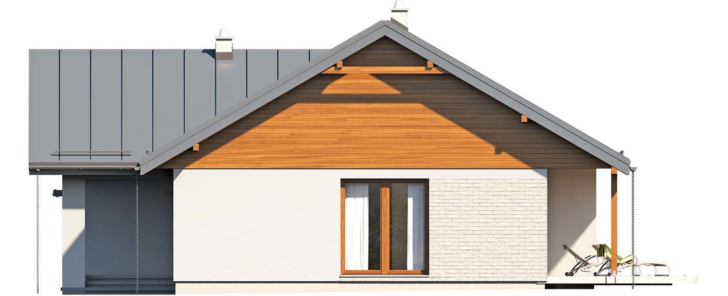 Graficzne opracowanie rzutów poglądowych widocznych na karcie projektu zostało wykonane przez Extradom.pl. Prezentowane przez Extradom.pl wizualizacje wykonane zostały przez autora projektu i należy poczytywać je jedynie za przykład i propozycję wykończenia, wizję architektoniczną autora projektu. Ostateczne wykończenie budynku może nastąpić na wiele sposobów. Szczegółowe rozwiązania zastosowane w oferowanej dokumentacji - w tym również ilość, lokalizacje i wygląd okien, drzwi, kominów - mogą w niewielkim stopniu różnić się od prezentowanej wizualizacji budynku.
