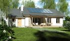 Graficzne opracowanie rzutów poglądowych widocznych na karcie projektu zostało wykonane przez Extradom.pl. Prezentowane przez Extradom.pl wizualizacje wykonane zostały przez autora projektu i należy poczytywać je jedynie za przykład i propozycję wykończenia, wizję architektoniczną autora projektu. Ostateczne wykończenie budynku może nastąpić na wiele sposobów. Szczegółowe rozwiązania zastosowane w oferowanej dokumentacji - w tym również ilość, lokalizacje i wygląd okien, drzwi, kominów - mogą w niewielkim stopniu różnić się od prezentowanej wizualizacji budynku.