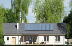 Graficzne opracowanie rzutów poglądowych widocznych na karcie projektu zostało wykonane przez Extradom.pl. Prezentowane przez Extradom.pl wizualizacje wykonane zostały przez autora projektu i należy poczytywać je jedynie za przykład i propozycję wykończenia, wizję architektoniczną autora projektu. Ostateczne wykończenie budynku może nastąpić na wiele sposobów. Szczegółowe rozwiązania zastosowane w oferowanej dokumentacji - w tym również ilość, lokalizacje i wygląd okien, drzwi, kominów - mogą w niewielkim stopniu różnić się od prezentowanej wizualizacji budynku.
