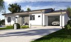 Graficzne opracowanie rzutów poglądowych widocznych na karcie projektu zostało wykonane przez Extradom.pl. Prezentowane przez Extradom.pl wizualizacje wykonane zostały przez autora projektu i należy poczytywać je jedynie za przykład i propozycję wykończenia, wizję architektoniczną autora projektu. Ostateczne wykończenie budynku może nastąpić na wiele sposobów. Szczegółowe rozwiązania zastosowane w oferowanej dokumentacji - w tym również ilość, lokalizacje i wygląd okien, drzwi, kominów - mogą w niewielkim stopniu różnić się od prezentowanej wizualizacji budynku.