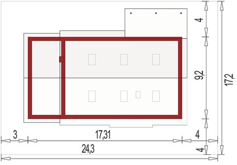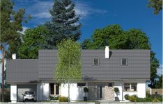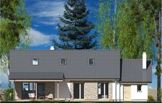 Graficzne opracowanie rzutów poglądowych widocznych na karcie projektu zostało wykonane przez Extradom.pl. Prezentowane przez Extradom.pl wizualizacje wykonane zostały przez autora projektu i należy poczytywać je jedynie za przykład i propozycję wykończenia, wizję architektoniczną autora projektu. Ostateczne wykończenie budynku może nastąpić na wiele sposobów. Szczegółowe rozwiązania zastosowane w oferowanej dokumentacji - w tym również ilość, lokalizacje i wygląd okien, drzwi, kominów - mogą w niewielkim stopniu różnić się od prezentowanej wizualizacji budynku.