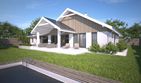 Graficzne opracowanie rzutów poglądowych widocznych na karcie projektu zostało wykonane przez Extradom.pl. Prezentowane przez Extradom.pl wizualizacje wykonane zostały przez autora projektu i należy poczytywać je jedynie za przykład i propozycję wykończenia, wizję architektoniczną autora projektu. Ostateczne wykończenie budynku może nastąpić na wiele sposobów. Szczegółowe rozwiązania zastosowane w oferowanej dokumentacji - w tym również ilość, lokalizacje i wygląd okien, drzwi, kominów - mogą w niewielkim stopniu różnić się od prezentowanej wizualizacji budynku.