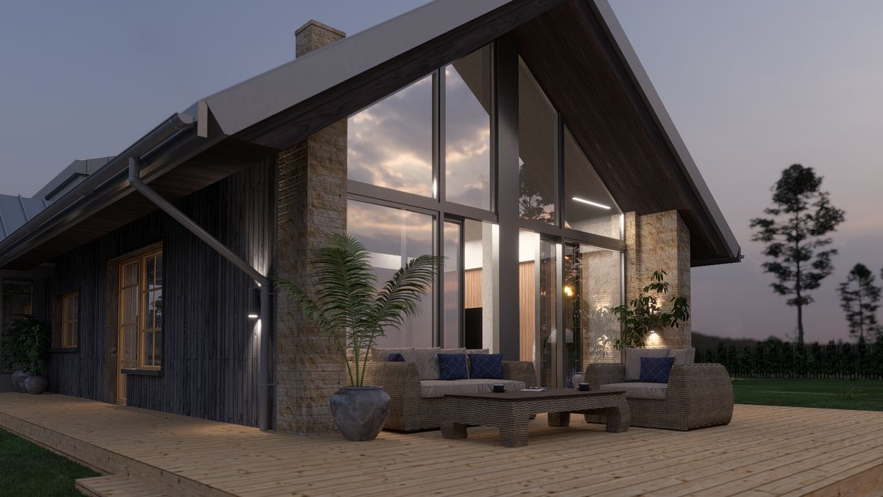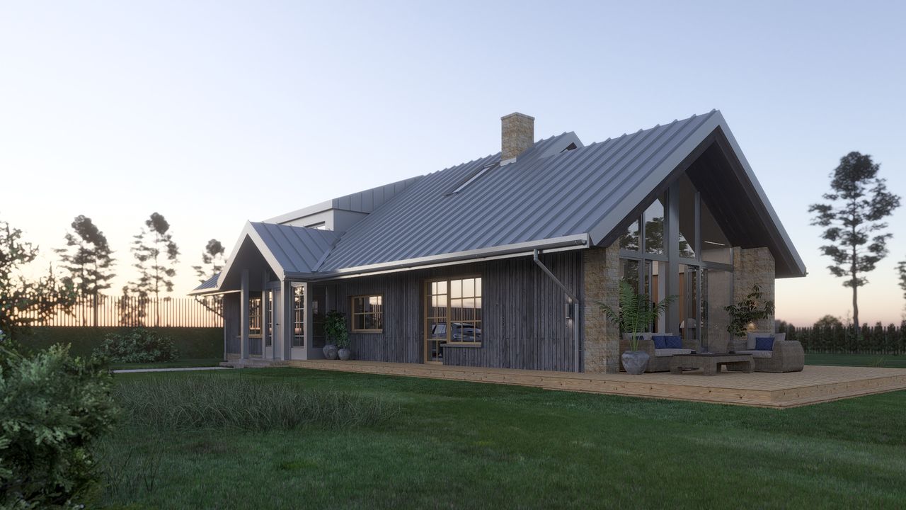 Graficzne opracowanie rzutów poglądowych widocznych na karcie projektu zostało wykonane przez Extradom.pl. Prezentowane przez Extradom.pl wizualizacje wykonane zostały przez autora projektu i należy poczytywać je jedynie za przykład i propozycję wykończenia, wizję architektoniczną autora projektu. Ostateczne wykończenie budynku może nastąpić na wiele sposobów. Szczegółowe rozwiązania zastosowane w oferowanej dokumentacji - w tym również ilość, lokalizacje i wygląd okien, drzwi, kominów - mogą w niewielkim stopniu różnić się od prezentowanej wizualizacji budynku.