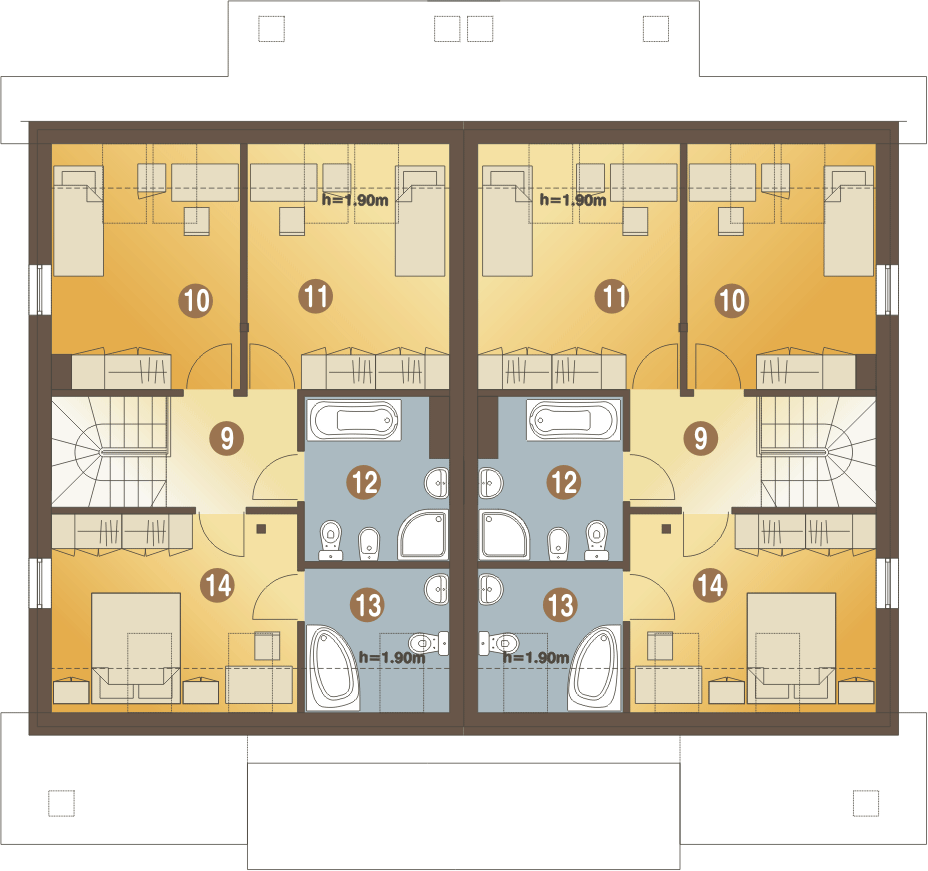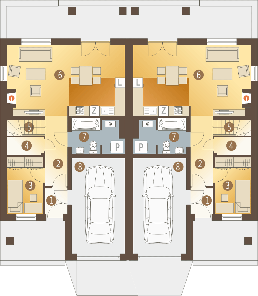 Budynek dwulokalowy posadowiony na wspólnym fundamencie. Jeśli planujesz budowę na osobnych działkach zamów pojedyncze segmenty: podstawa + lustro.