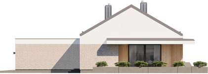 Graficzne opracowanie rzutów poglądowych widocznych na karcie projektu zostało wykonane przez Extradom.pl. Prezentowane przez Extradom.pl wizualizacje wykonane zostały przez autora projektu i należy poczytywać je jedynie za przykład i propozycję wykończenia, wizję architektoniczną autora projektu. Ostateczne wykończenie budynku może nastąpić na wiele sposobów. Szczegółowe rozwiązania zastosowane w oferowanej dokumentacji - w tym również ilość, lokalizacje i wygląd okien, drzwi, kominów - mogą w niewielkim stopniu różnić się od prezentowanej wizualizacji budynku.