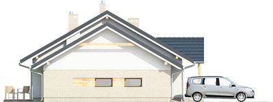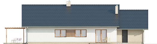 Graficzne opracowanie rzutów poglądowych widocznych na karcie projektu zostało wykonane przez Extradom.pl. Prezentowane przez Extradom.pl wizualizacje wykonane zostały przez autora projektu i należy poczytywać je jedynie za przykład i propozycję wykończenia, wizję architektoniczną autora projektu. Ostateczne wykończenie budynku może nastąpić na wiele sposobów. Szczegółowe rozwiązania zastosowane w oferowanej dokumentacji - w tym również ilość, lokalizacje i wygląd okien, drzwi, kominów - mogą w niewielkim stopniu różnić się od prezentowanej wizualizacji budynku.