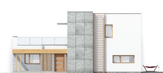 Graficzne opracowanie rzutów poglądowych widocznych na karcie projektu zostało wykonane przez Extradom.pl. Prezentowane przez Extradom.pl wizualizacje wykonane zostały przez autora projektu i należy poczytywać je jedynie za przykład i propozycję wykończenia, wizję architektoniczną autora projektu. Ostateczne wykończenie budynku może nastąpić na wiele sposobów. Szczegółowe rozwiązania zastosowane w oferowanej dokumentacji - w tym również ilość, lokalizacje i wygląd okien, drzwi, kominów - mogą w niewielkim stopniu różnić się od prezentowanej wizualizacji budynku.