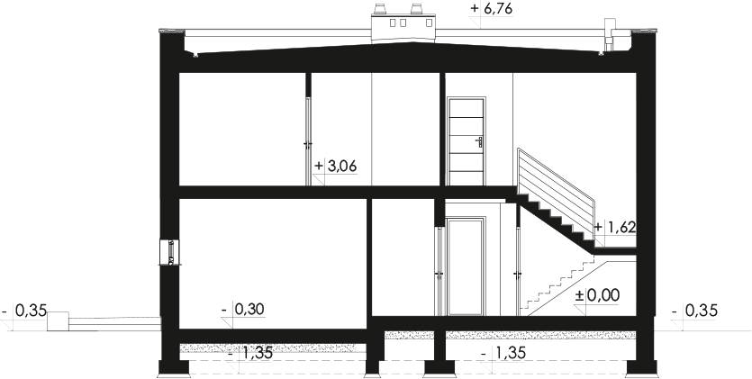 Ściany zewnętrzne: dwuwarstwowe o gr. 25cm, z pustaków ceramicznych firmy LEIER+ styropian Termo Organika o gr. 20cm + tynk. Schody: żelbetowe, monolityczne dwubiegowe ze spocznikiem. Strop: płyta żelbetowa. Dach: konstrukcja żelbetowa, pokryty papą termozgrzewalną na płytach z polistyrenu ekstrudowanego Źródło ciepła: kocioł gazowy, kominek z płaszczem wodnym na biomasę i zestaw solarny (c.w.u.).Pomieszczenie gospodarcze spełnia wymagania kotłowni na paliwo stałe,w związku z czym na etapie adaptacji istnieje możliwość zmiany sposobu ogrzewania. Wentylacja: grawitacyjna. Stolarka okienna i drzwiowa: okna i drzwi PVC, rolety zewnętrzne, brama garażowa segmentowa, ocieplona.