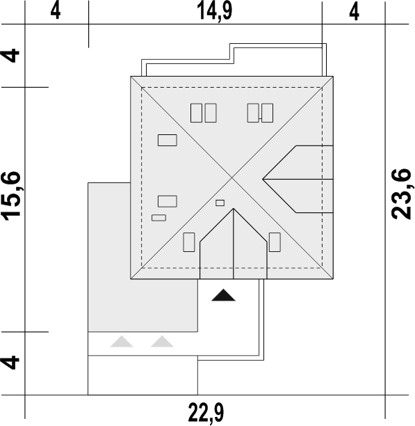 Graficzne opracowanie rzutów poglądowych widocznych na karcie projektu zostało wykonane przez Extradom.pl. Prezentowane przez Extradom.pl wizualizacje wykonane zostały przez autora projektu i należy poczytywać je jedynie za przykład i propozycję wykończenia, wizję architektoniczną autora projektu. Ostateczne wykończenie budynku może nastąpić na wiele sposobów. Szczegółowe rozwiązania zastosowane w oferowanej dokumentacji - w tym również ilość, lokalizacje i wygląd okien, drzwi, kominów - mogą w niewielkim stopniu różnić się od prezentowanej wizualizacji budynku.