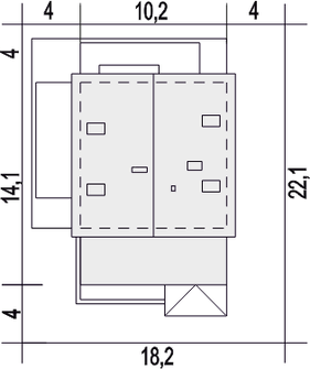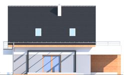 Graficzne opracowanie rzutów poglądowych widocznych na karcie projektu zostało wykonane przez Extradom.pl. Prezentowane przez Extradom.pl wizualizacje wykonane zostały przez autora projektu i należy poczytywać je jedynie za przykład i propozycję wykończenia, wizję architektoniczną autora projektu. Ostateczne wykończenie budynku może nastąpić na wiele sposobów. Szczegółowe rozwiązania zastosowane w oferowanej dokumentacji - w tym również ilość, lokalizacje i wygląd okien, drzwi, kominów - mogą w niewielkim stopniu różnić się od prezentowanej wizualizacji budynku.