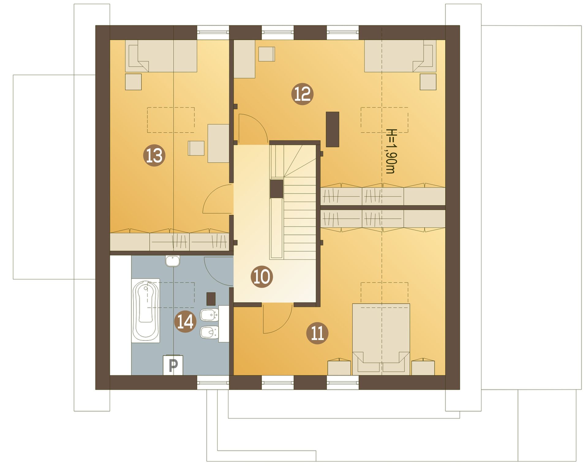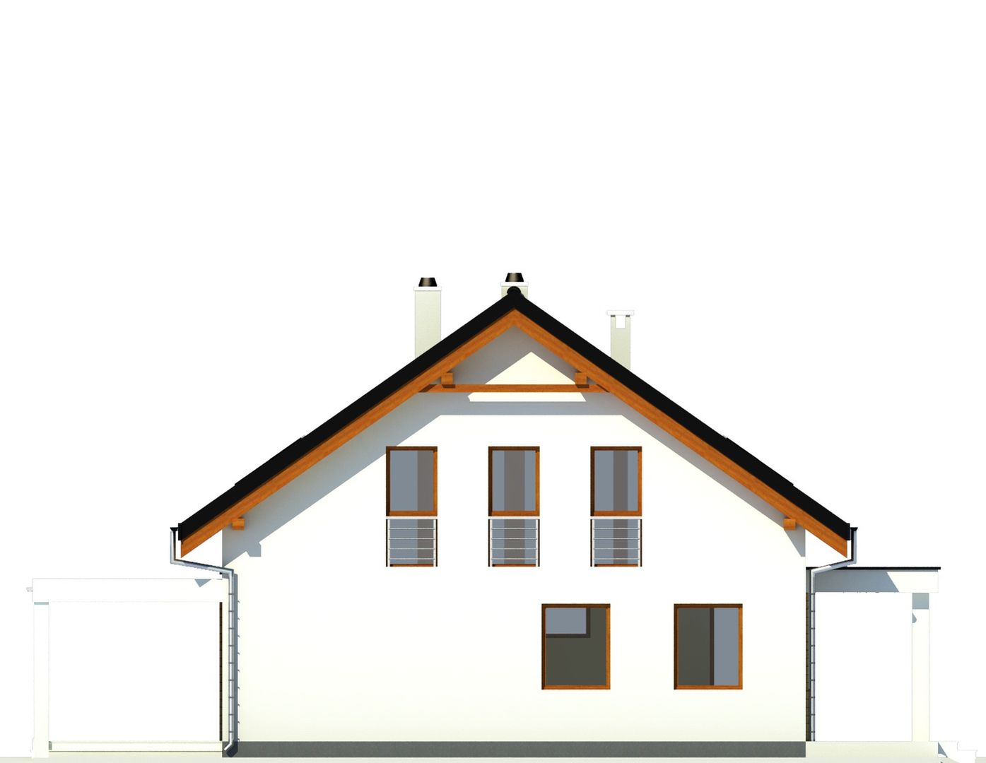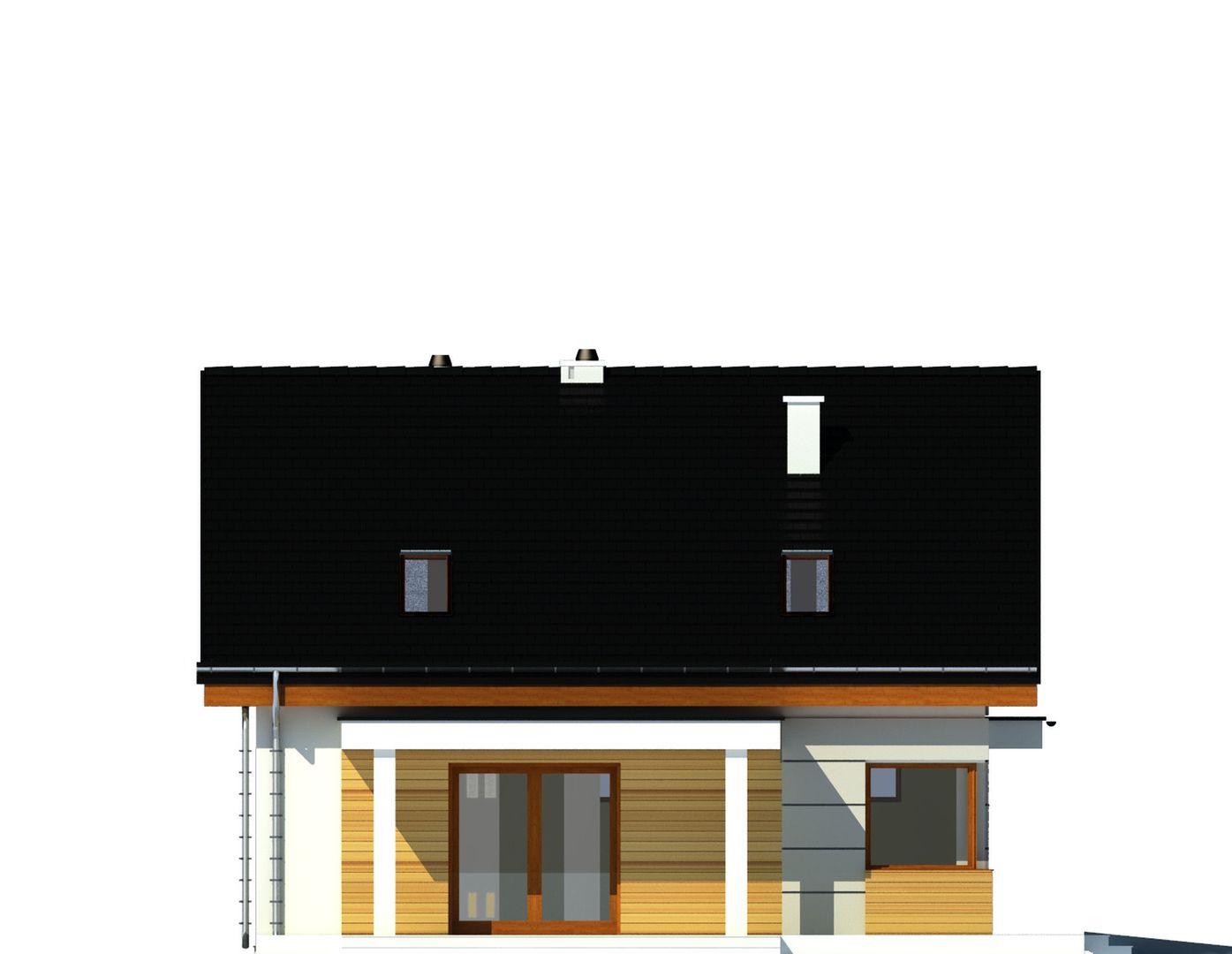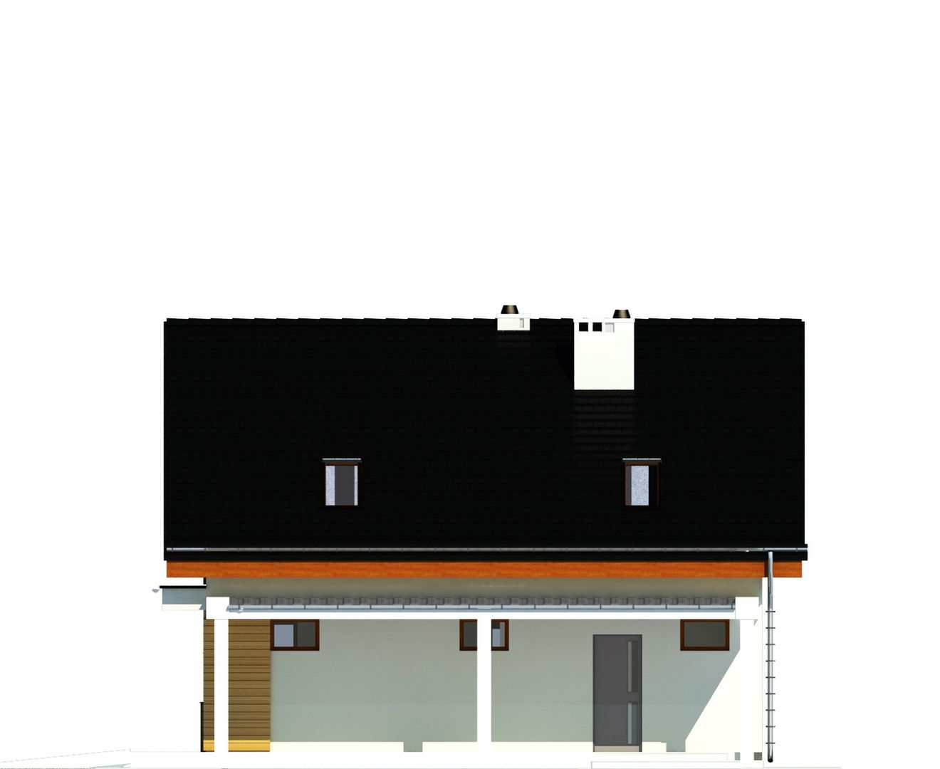 Graficzne opracowanie rzutów poglądowych widocznych na karcie projektu zostało wykonane przez Extradom.pl. Prezentowane przez Extradom.pl wizualizacje wykonane zostały przez autora projektu i należy poczytywać je jedynie za przykład i propozycję wykończenia, wizję architektoniczną autora projektu. Ostateczne wykończenie budynku może nastąpić na wiele sposobów. Szczegółowe rozwiązania zastosowane w oferowanej dokumentacji - w tym również ilość, lokalizacje i wygląd okien, drzwi, kominów - mogą w niewielkim stopniu różnić się od prezentowanej wizualizacji budynku.