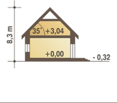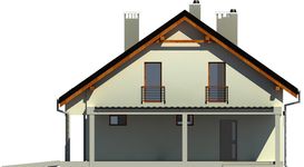 Graficzne opracowanie rzutów poglądowych widocznych na karcie projektu zostało wykonane przez Extradom.pl. Prezentowane przez Extradom.pl wizualizacje wykonane zostały przez autora projektu i należy poczytywać je jedynie za przykład i propozycję wykończenia, wizję architektoniczną autora projektu. Ostateczne wykończenie budynku może nastąpić na wiele sposobów. Szczegółowe rozwiązania zastosowane w oferowanej dokumentacji - w tym również ilość, lokalizacje i wygląd okien, drzwi, kominów - mogą w niewielkim stopniu różnić się od prezentowanej wizualizacji budynku.
