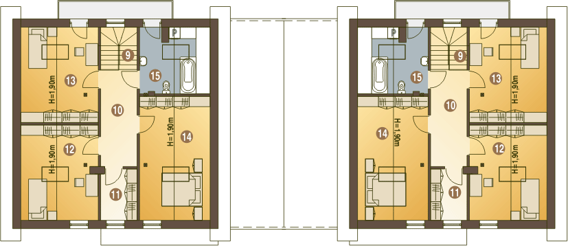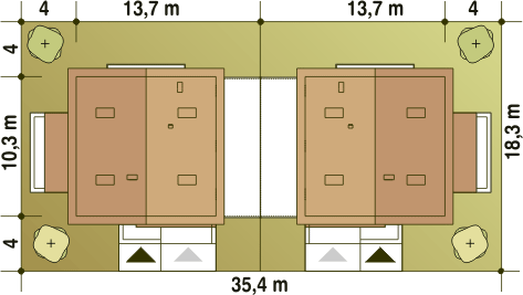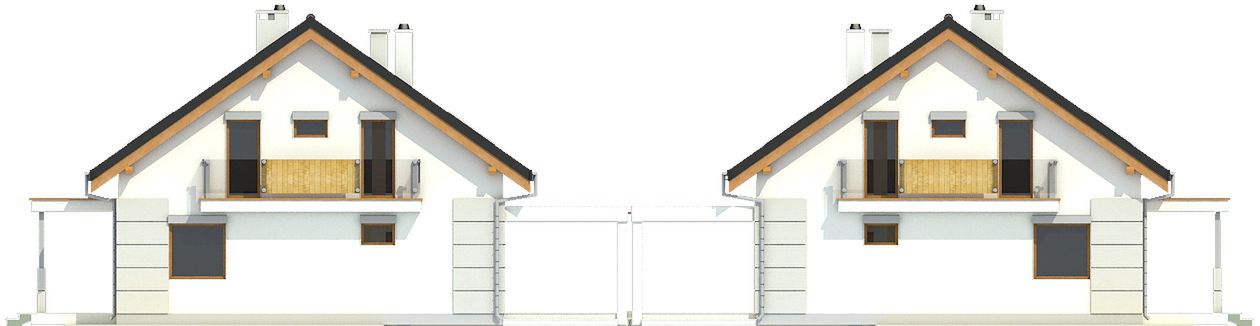 Projekt wymaga aktualizacji. Przy zakupie projektu należy zapłacić 50% zaliczki. Zaliczka jest bezzwrotna w przypadku zwrotu lub rezygnacji z zamówienia. Budynek dwulokalowy posadowiony na wspólnym fundamencie. Jeśli planujesz budowę na osobnych działkach zamów pojedyncze segmenty: podstawa + lustro.
