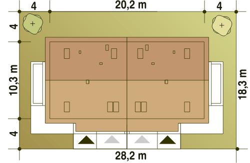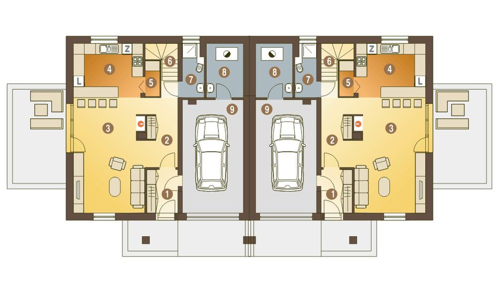 Projekt jest w fazie koncepcji. Przy zakupie projektu należy zapłacić 50% zaliczki. Zaliczka jest bezzwrotna w przypadku zwrotu lub rezygnacji z zamówienia. Budynek dwulokalowy posadowiony na wspólnym fundamencie. Jeśli planujesz budowę na osobnych działkach zamów pojedyncze segmenty: podstawa + lustro.