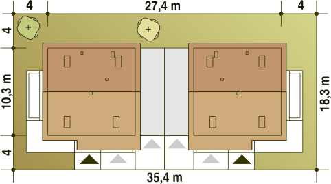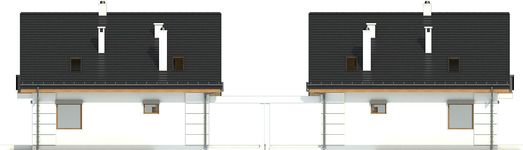 Projekt jest w fazie koncepcji. Przy zakupie projektu należy zapłacić 50% zaliczki. Zaliczka jest bezzwrotna w przypadku zwrotu lub rezygnacji z zamówienia. Budynek dwulokalowy posadowiony na wspólnym fundamencie. Jeśli planujesz budowę na osobnych działkach zamów pojedyncze segmenty: podstawa + lustro.