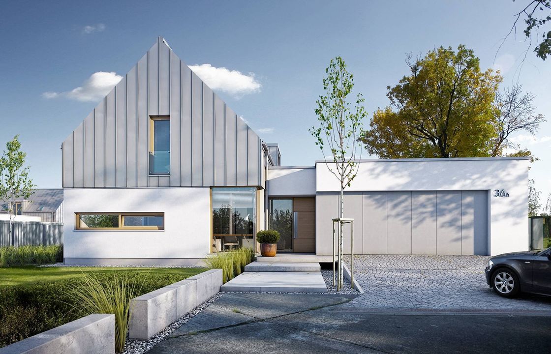 Konstrukcja: zgodna z normami EUROKOD. Fundamenty: tradycyjne ławy i stopy żelbetowe. Ściany: bloczek silikatowy + styropian na etapie adaptacji projektu istnieje możliwość zamiany bloczka silikatowego na inny materiał o podobnych parametrach wytrzymałosciowych, np. na pustak ceramiczny. Elewacja: tynk, blacha na rąbek, płyta elewacyjna z włóknocementu płytę elewacyjną z włóknocementu wykorzystaną jako materiał dekoracyjny można zamienić na etapie adaptacji projektu na inny, np. na deskę elewacyjną. Stropy: żelbetowe wylewane na etapie adaptacji projektu istnieje możliwość zmiany technologii stropu na gęstożebrowy lub prefabrykowany. Schody: konstrukcji lekkiej konstrukcja oraz materiały wykończeniowe schodów przewidziane do indywidualnej aranżacji. Możesz skorzystać z usług naszego Partnera. Formularz ofertowy dostępny w zakładce „kosztorys”. Dach: blacha na rąbek konstrukcja więźby przewidziana pod pokrycie ciężkie dla I strefy wiatrowej i II strefy śniegowej.